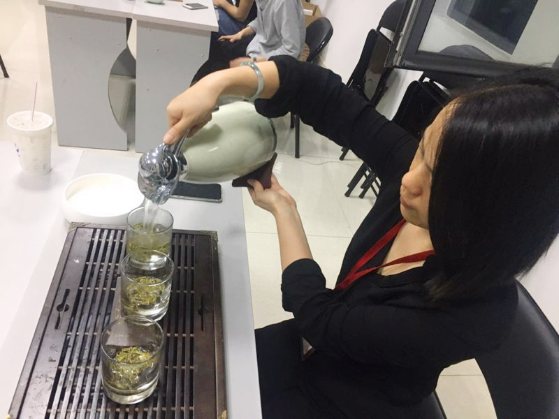 在随后的茶艺培训里,刘琴老师更是细致的讲解了不同茶的不同冲泡手法,通过现场呈现的方式让大家对不同品类的茶叶有了更显性的对比。温杯、洗茶、泡茶、奉茶这几个基本步骤是每一种茶叶的基本泡制步骤,参加培训的人员现学现泡,在刘琴老师的指导下泡茶,并互相奉茶,品茶,呷茶入口,顿觉口鼻生香,借茶香茶韵,一种淡泊谦和的意境油然而生。