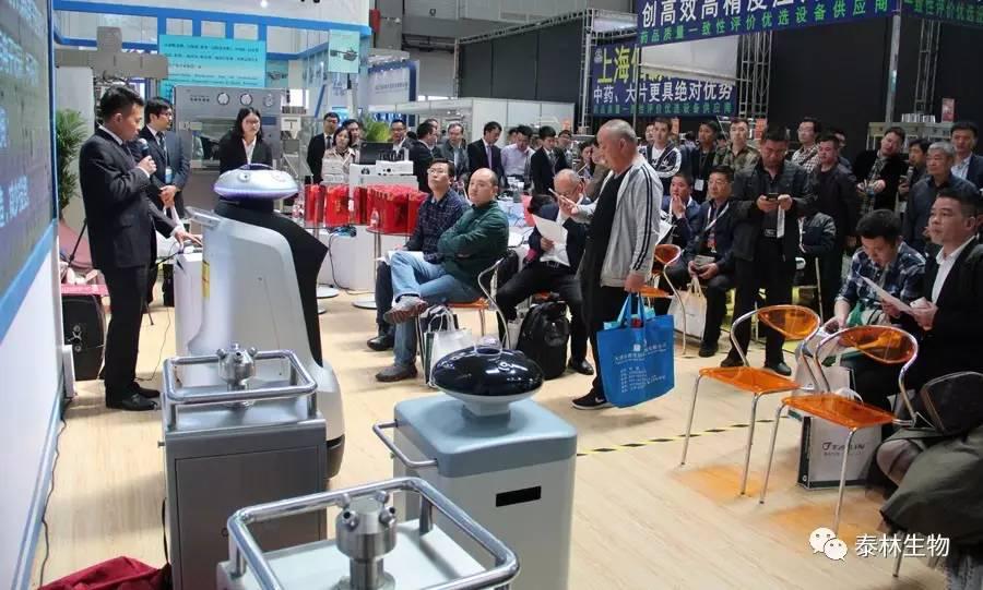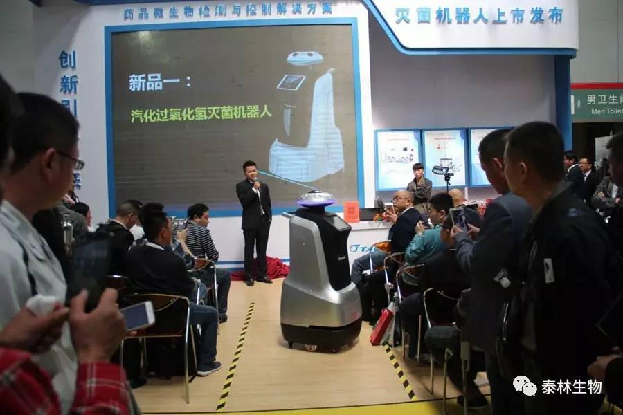 4月19日,第53届中国国际制药机械博览会在青岛国际博览中心盛大开幕。泰林生物在制剂二馆W2-59展台隆重举行了灭菌机器人上市发布会。上午10:18发布会正式开始,由浙江泰林生物技术股份有限公司副总经理夏信群先生致开幕词,欢迎行业内新老客户莅临泰林展台,参加过氧化氢灭菌机器人上市发布会,并邀请客户进行了揭幕仪式。
