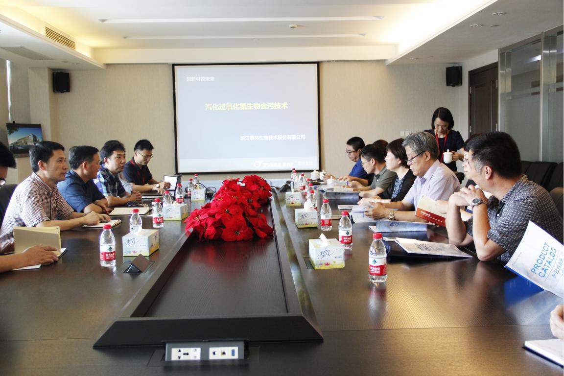 在随后的交流座谈会上,公司副总经理夏信群汇报了泰林发展情况、汽化过氧化氢生物去污技术在医疗、疾控领域的应用情况,与调研组就汽化过氧化氢消毒技术交流探讨。