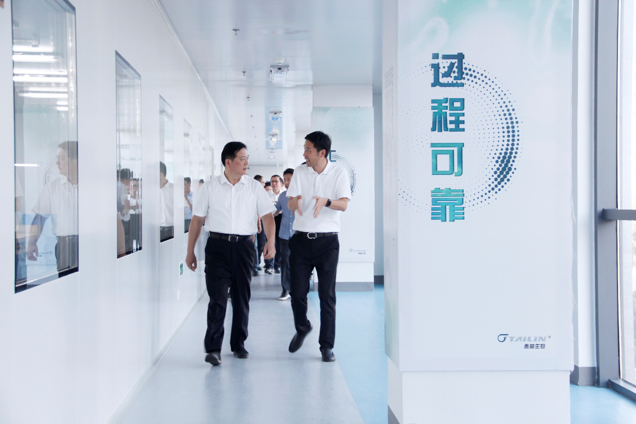 在参观走访一线生产场地的过程中,朱党其书记详细了解泰林在生命科学、医学工程领域的创新成果,看到公司产品均为自主研发、具有核心自主知识产权,给予了充分肯定,称赞产品技术含量高,行业发展前景向好。