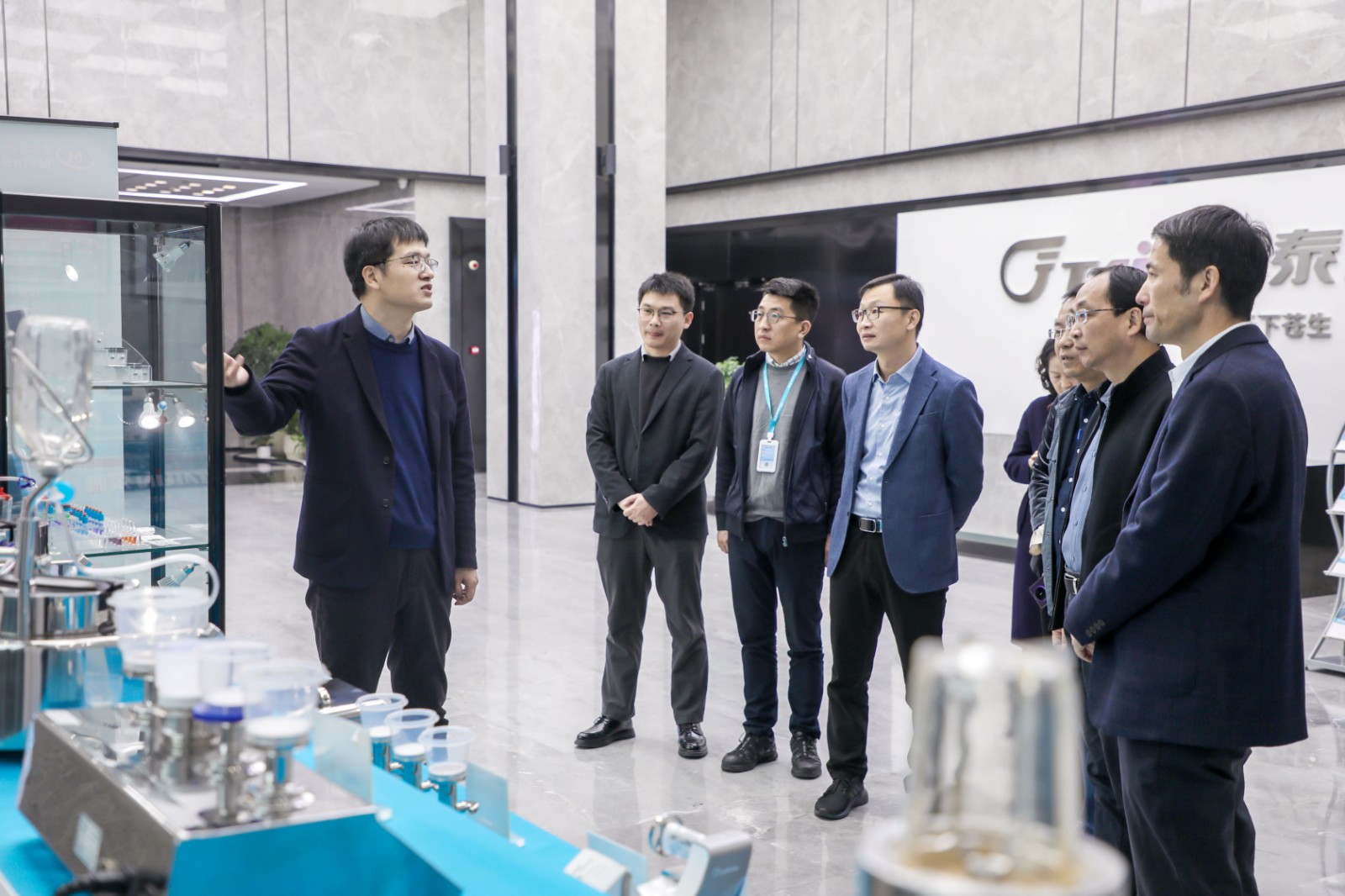 签约结束后,在泰林生命科学副总经理徐磊的陪同下,南方水中心张东总经理一行参观了泰林生命科学与泰林医学工程两个园区,详细了解泰林水生态(微生物、寄生虫和藻类)检测整体解决方案创新与探索,并就水生态检测领域的研发与场景化应用进行了深入交流,同时对泰林在制药、新材料、环保、半导体等领域的应用与布局表示赞赏。
