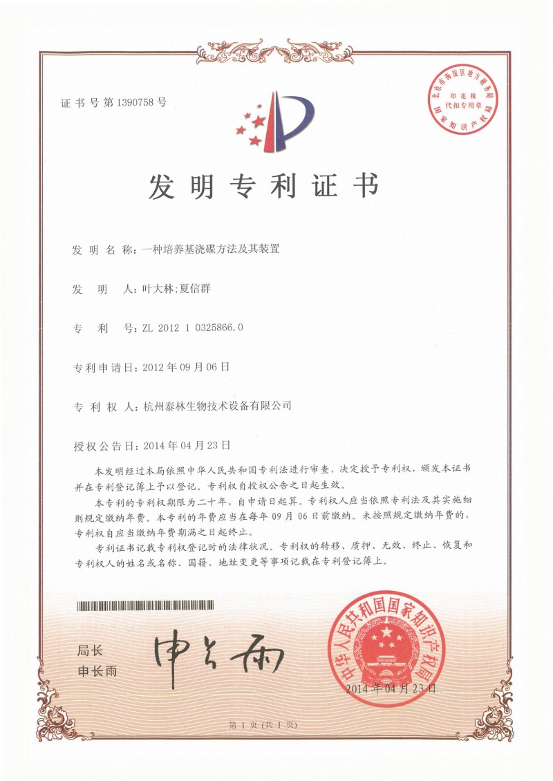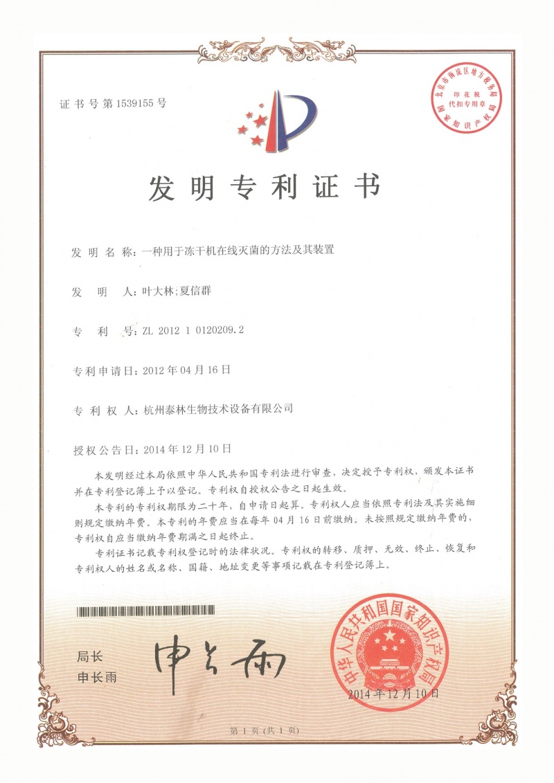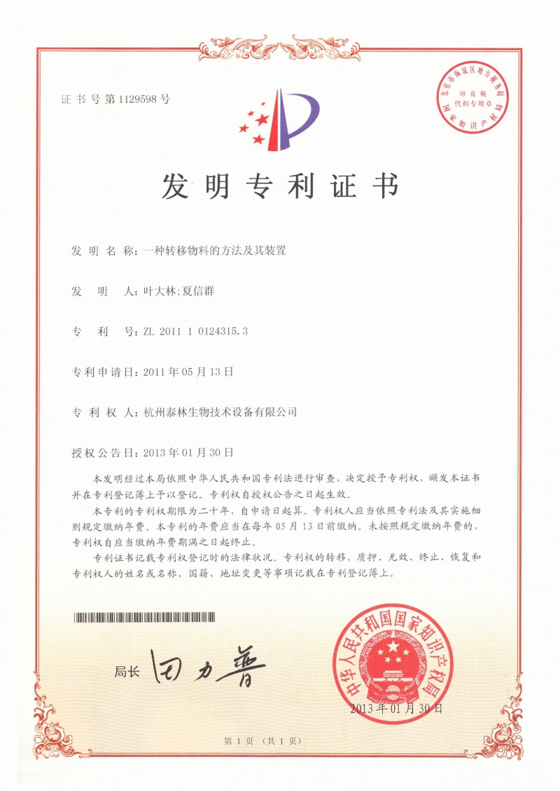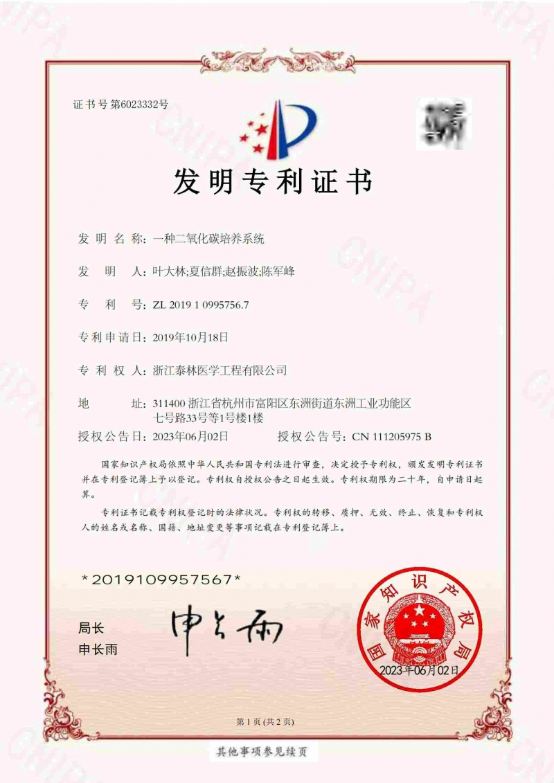 泰林生物拥有国家专利450余项,其中发明专利63项。